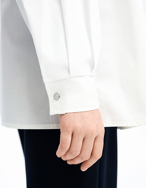 Лёгкая белая блузка прямого силуэта, декорированная изящной авторской вышивкой. Комфортная застёжка на кнопки. Накладной карман. Глубокий разрез с одной стороны. Складки-защипы на рукавах. Модель выполнена из качественного поплина для комфорта и стиля.