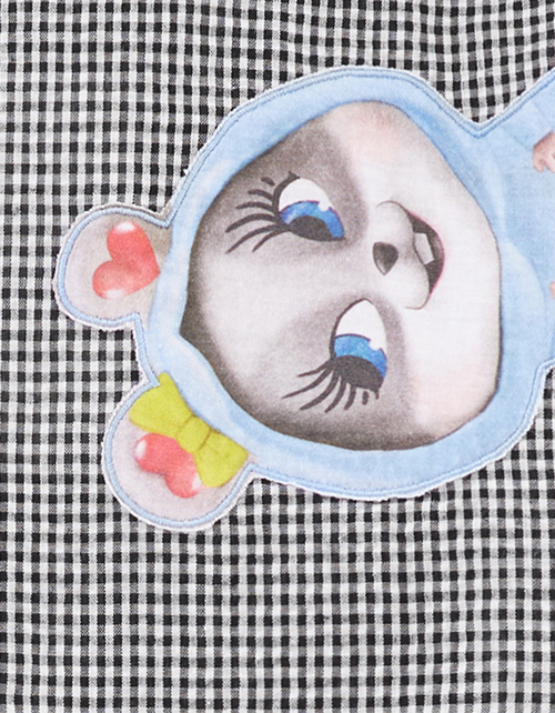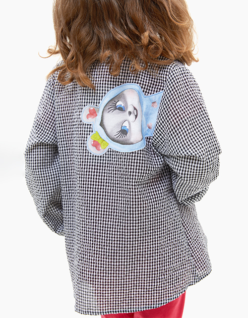 Рубашка в клетку для девочки. Удлинённая модель комфортного трапециевидного силуэта. Изделие на кнопках (одна из них - контрастного цвета). Рубашка из материала с крэш-эффектом и трикотажными манжетами. Модель декорирована авторской вышивкой и принтом.