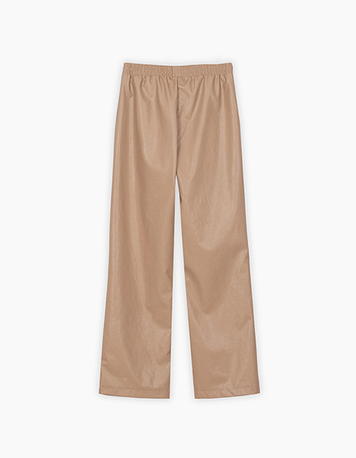 Стильные брюки в тёплом бежевом оттенке для девочки. Прямая модель со средней посадкой. Изделие на комфортном мягком поясе. Брюки с карманами. Модель из эко-кожи.