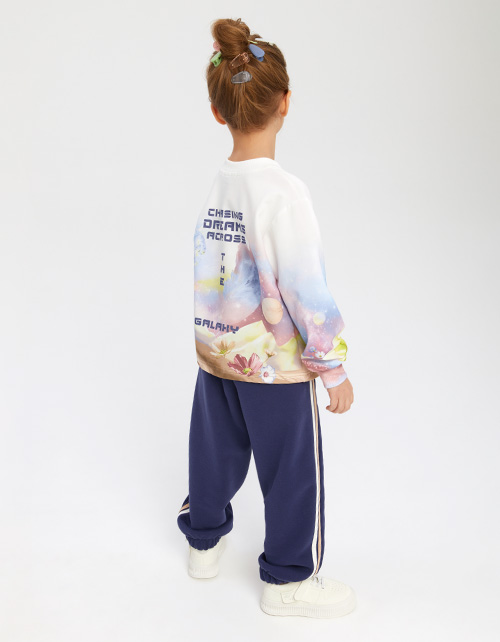 Дизайнерский свитшот для девочки. Модель комфортного прямого силуэта. Манжеты, низ изделия и горловина из мягкой эластичной рибаны. Свитшот полностью декорирован авторскими принтами и стразами. Составит стильные образы с брюками 253055 или 252061.