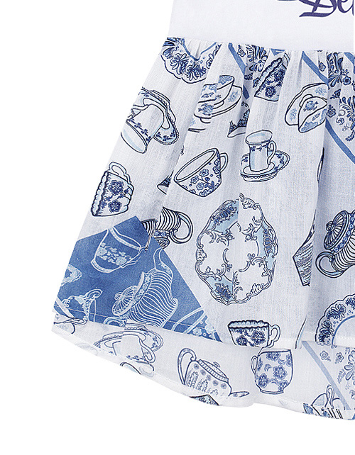 Футболка с баской из воздушной ткани для девочки. Круглый вырез горловины. Оформление в стилистике капсулы "Чаепитие в саду", стразы на лицевой стороне.