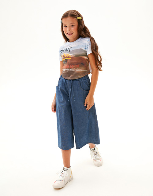 Дизайнерский топ для девочки. Укороченная модель прилегающего силуэта. Втачной рукав. Эластичная горловина. Футболка с акцентным авторским принтом.