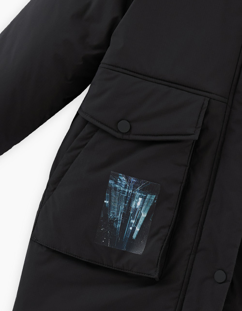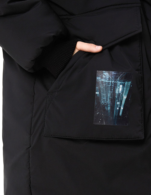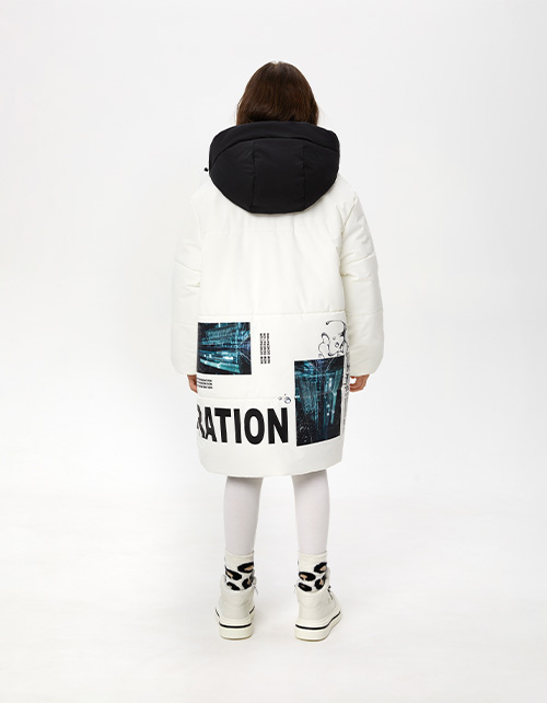 Двухсторонняя зимняя куртка. На чёрной стороне ветрозащитная планка на кнопках. Эластичные трикотажные манжеты. Утяжка по капюшону. Печать DTF, нашивной элемент. Гипоаллергенный силиконизированный синтепон. Рекомендовано до -20.