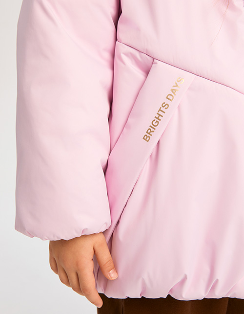 Осенняя светло-розовая куртка на гипоаллергенном синтепоне. Капюшон с регулировкой. Довязанный воротник-стойка. Комбинированная подкладка: флис и нейлон. Подкладка карманов на флисе. DTF-печать. Рекомендуемая температура: до -5.