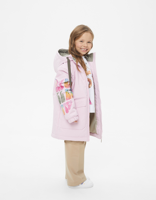 Весенняя куртка с капюшоном для девочки. Водо- и грязеотталкивающая удлинённая модель. Прямой силуэт, спущенная линия плеча, манжеты по рукавам, функциональная утяжка по горловине, объёмные, вместительные карманы. Утеплена синтепоном (120 гр).