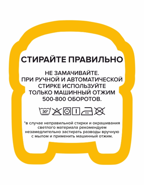 Максимальная температура стирки 30°C (мягкий режим), Не отбеливать, Не применять барабанную сушку, Сушка на веревке или вешалке после стирки с отжимом, Гладить при максимальной температуре подошвы утюга 150°С, Химчистка запрещена