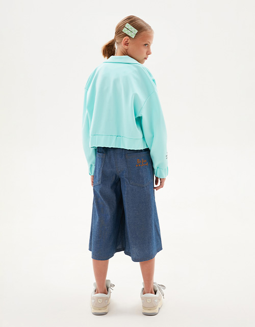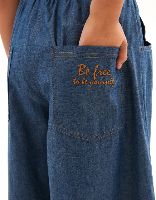 Трендовые джинсовые шорты-бермуды для девочки. Модель со средней посадкой на мягком эластичном поясе. Шорты с контрастными строчками. Изделие с боковыми карманами спереди и накладными сзади. Шорты декорированы вышивкой.