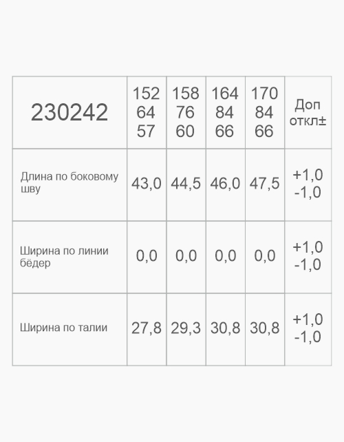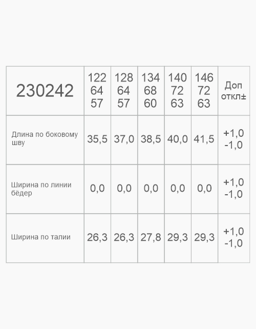 | Обхват талии, см | 51 | 54 | 54 | 57 | 57 | 60 | 63 | 63 | 60 | 63 | 66 | 66 | 69 | 72 | 69 | 72 |