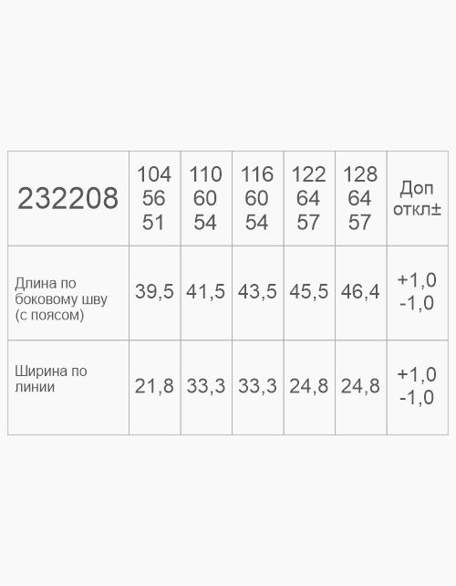 | Рост, см | 104 | 110 | 116 | 122 | 128 | 134 | 140 | 146 | 152 | 158 | 164 | 170 | 170 | 170 | 176 | 176 |