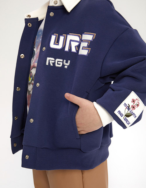 Стильный жакет-поло из тактильно приятного материала для девочки. Комфортная прямая объёмная модель. Приспущенная линия плеча. Манжеты и низ изделия из мягкой эластичной рибаны. Комфортная застёжка на кнопки. Изделие декорировано авторской вышивкой.