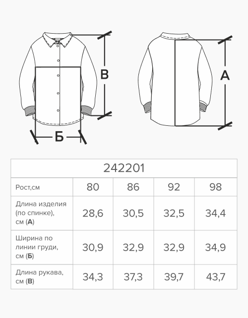 | Рост, см | 56 | 62 | 68 | 74 | 80 | 86 | 92 | 98 |