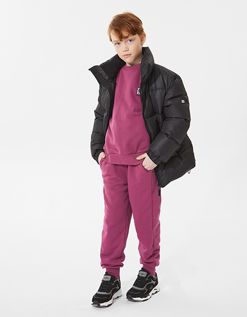 Стильные брюки-джоггеры для мальчика выполнены в трендовом оттенке "Красная слива". Комфортная модель на эластичном поясе дополнена наклонными боковыми карманами.
