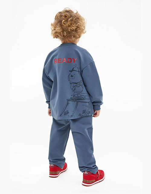 Комфортные брюки-карго в благородном оттенке деним для мальчика. Прямая модель. Изделие на мягком поясе со средней посадкой. Комбинация материалов: футер и твил. Накладные боковые карманы.