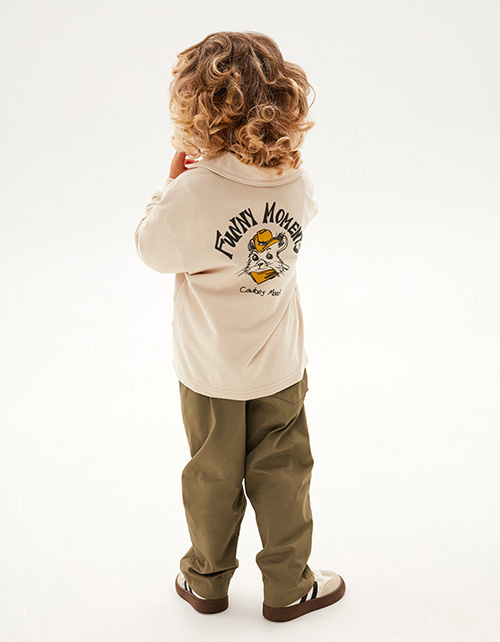 Брюки из твила глубокого оттенка тосканская олива для мальчика. Модель прямого силуэта. Изделие на мягком эластичном поясе, со средней посадкой. Спереди имитация карманов-хулиганов, сзади - накладной.