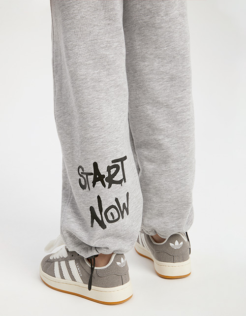 Брюки оттенка серый меланж для мальчика. Комфортная прямая модель со средней посадкой. Изделие на эластичном поясе. Низ изделия с утяжкой. Брюки дополнены карманами в швах. Изделие декорировано авторским шрифтовым принтом.