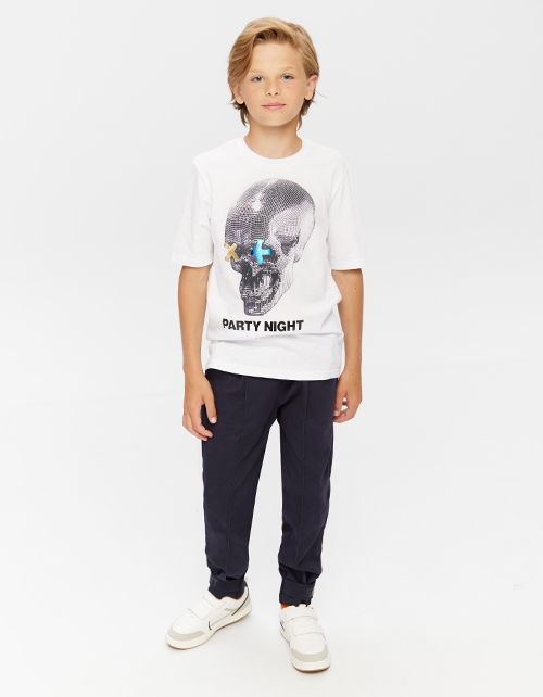Стильная белая футболка для мальчика. Модель с тематическим принтом капсулы EVENT. Halloween Party