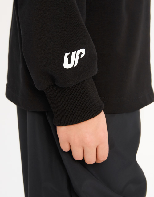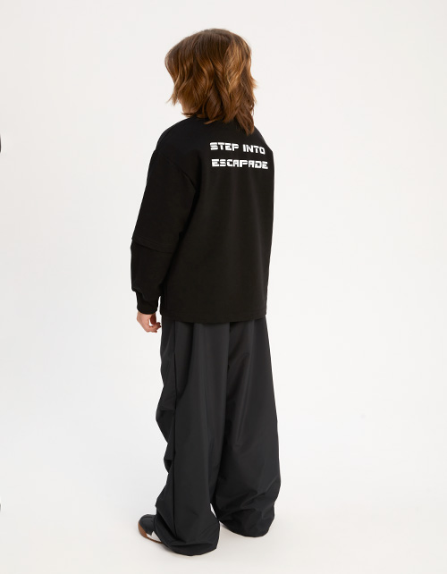 Дизайнерский свитшот с эффектом многослойности для мальчика. Прямой силуэт с приспущенной линией плеча. Манжеты и горловина выполнены из мягкой эластичной рибаны. Модель декорирована трансферной плёнкой и вышивкой.