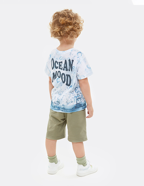 Дизайнерская футболка для мальчика. Модель прямого силуэта. Спущенная линия плеча. Эластичная горловина из рибаны. Авторский принт по всему изделию.
