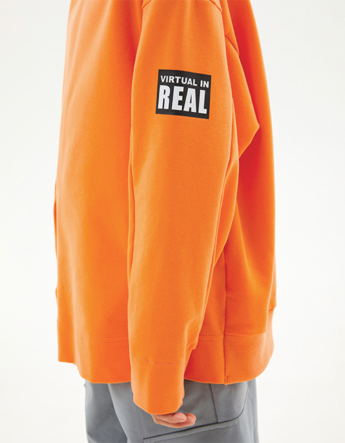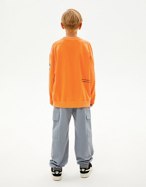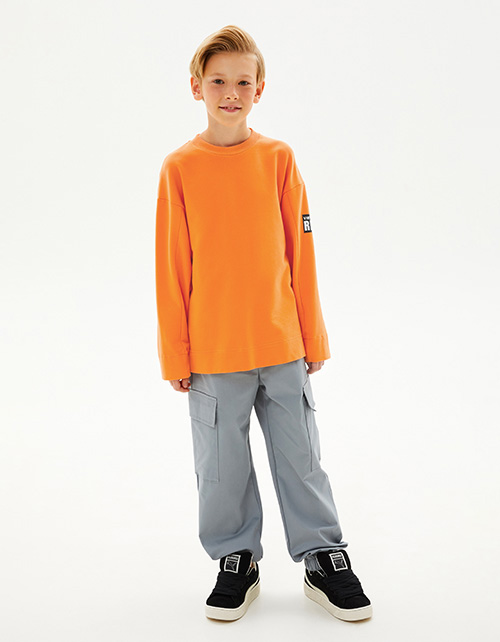Свитшот сочного оттенка абрикос для мальчика. Комфортная прямая объёмная модель. Спущенная линия плеча. Горловина, сзади манжеты и низ изделия из эластичной рибаны. Свитшот из тактильно приятного материала с бархатистым эффектом. Авторские принты.