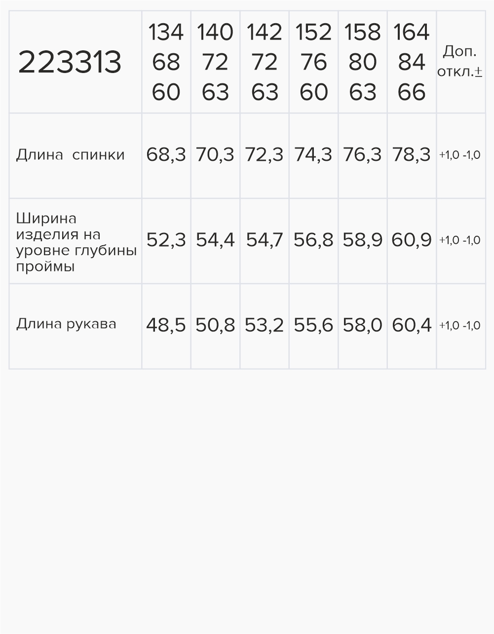 | Обхват груди, см | 56 | 60 | 60 | 64 | 64 | 68 | 72 | 72 | 76 | 80 | 84 | 84 | 88 | 92 | 88 | 92 |