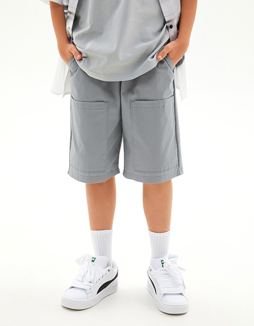 Трендовые шорты-карго сложного серо-зелёного оттенка для мальчика. Комфортная прямая модель. Изделие на мягком эластичном поясе, со средней посадкой. Шорты из твила дополнены карманами накладными и хулиганами. Комбинация материалов: твил и футер.