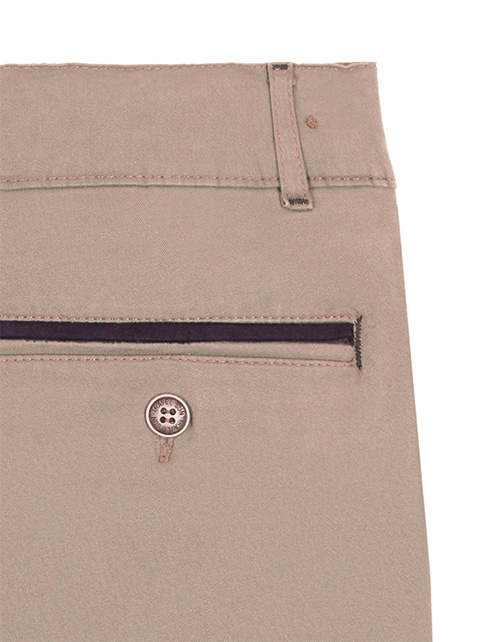 Бежевые шорты для мальчика с отворотами по низу. Два прорезных кармана на задней части изделия. Оформление в стилистике капсулы "Городские джунгли".