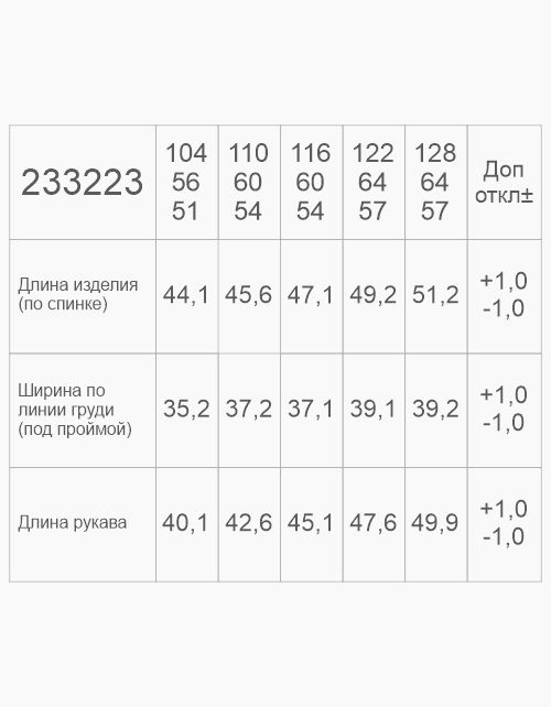 | Рост, см | 56 | 62 | 68 | 74 | 80 | 86 | 92 | 98 |