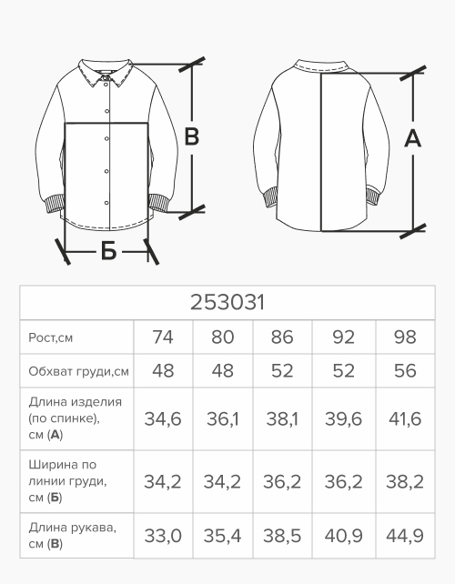 | Рост, см | 56 | 62 | 68 | 74 | 80 | 86 | 92 | 98 |