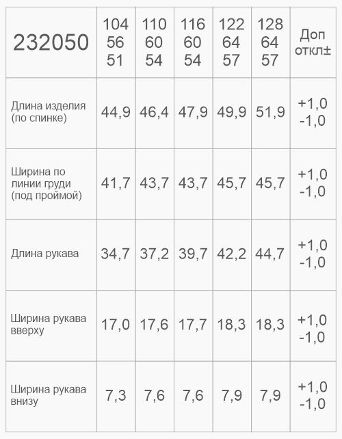| Рост, см | 104 | 110 | 116 | 122 | 128 | 134 | 140 | 146 | 152 | 158 | 164 | 170 | 170 | 170 | 176 | 176 |